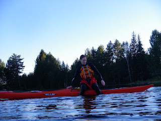 Etter en våt og etterhvert kald lørdag 28. på Glomma var Trude og jeg raske til å sette ny dato for mer trening. Bjørn Ivar kom også - så da var vi tre! En herlig kveld, igjen. Og helt sikkert så blir vi bedre og bedre. Vi supplerte sculling i vannflaten - som jeg ikke fikser ennå - med trening på kajakken. Hva skal vi med åre, kan jo padle med henda, sitte på dekk og padle... Trene på å stå i kajakken er kjempegod automatisering av cowboy - for vi går unektelig i vannet ofte..